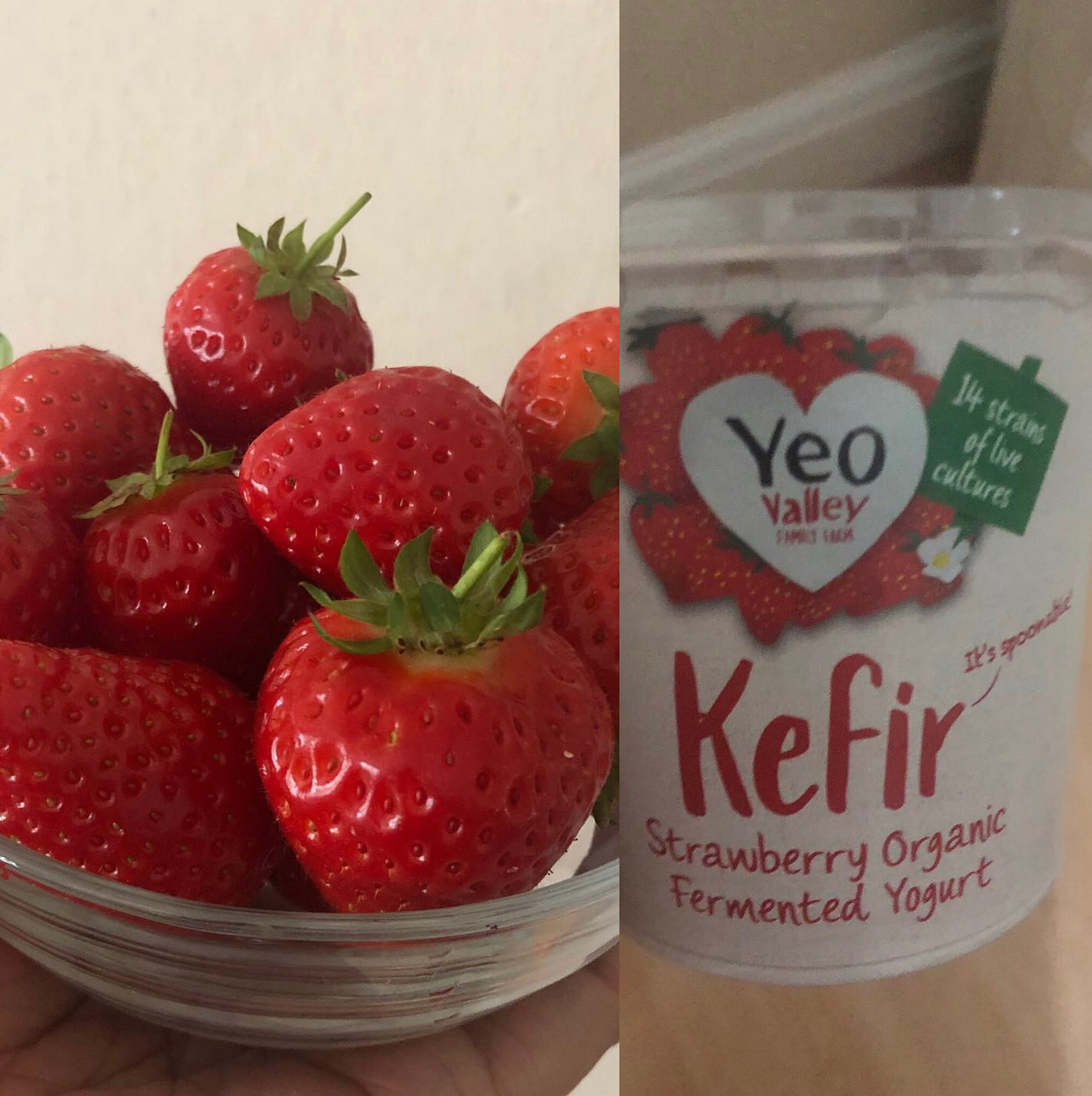 So no surprise, I had fresh, English strawberries with a bowl of kefir for breakfast this morning. Another way I like to team these two is by blending the berries with some kefir to make a strawberry smoothie! If you want you could add 50ml of water to make it a more drinkable consistency. Try it and let me know in the comments.