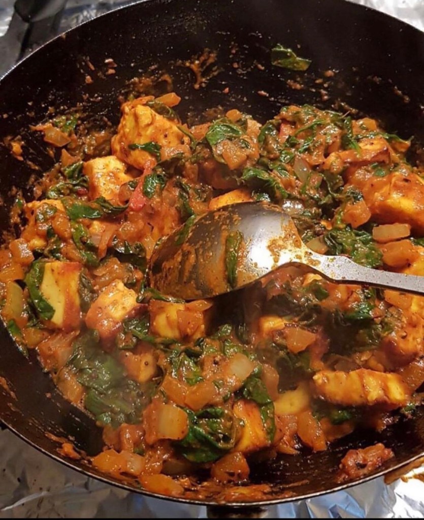 Then add in fresh basil and mix well. After a few minutes turn of the heat.